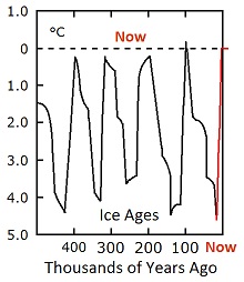 Ocean temperatures constantly increase between ice ages, melting polar ice, until so much snowfall occurs in the north that it no longer melts during the summers and precipitously reflects away sunlight. The cause is accumulation of solar heat in the oceans, not greenhouse gases. |